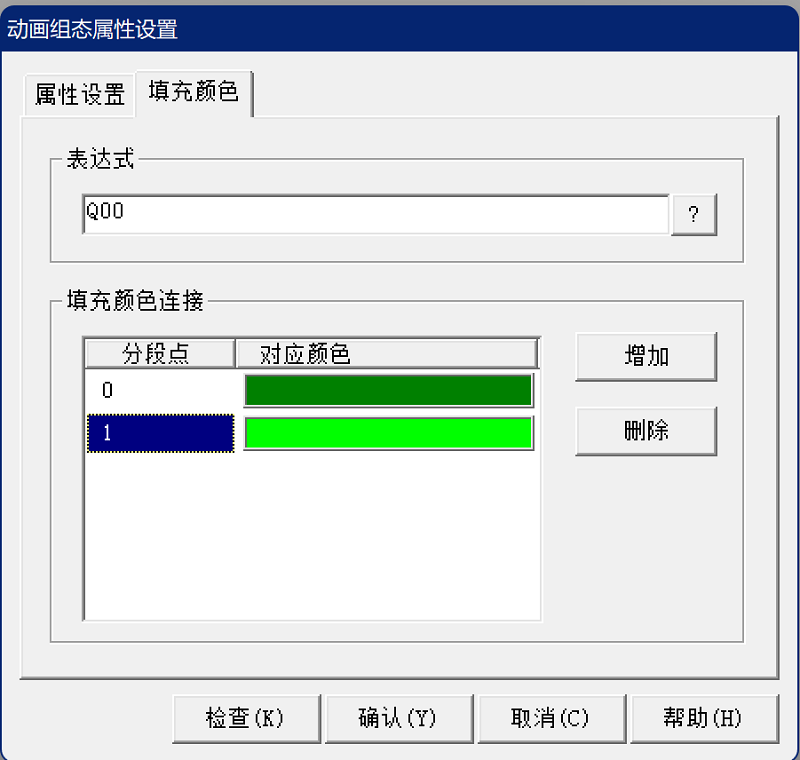 将指示灯与变量Q00用填充颜色属性关联