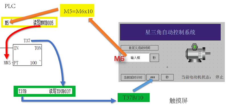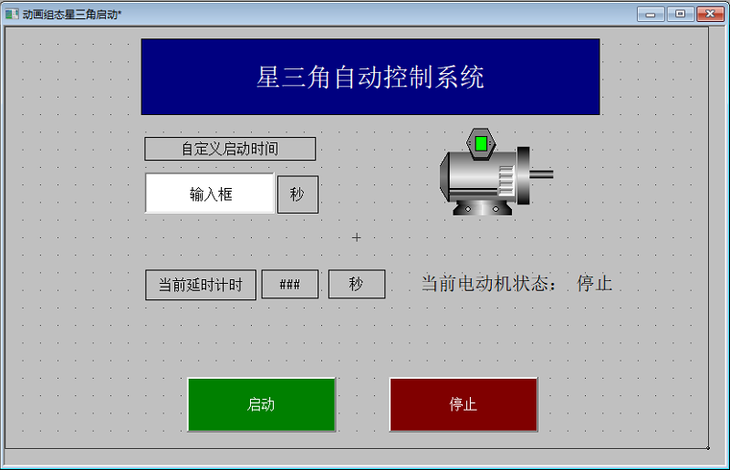 当前电动机状态后面的文字显示电动机的工作状态“停止”、“星型启动”、“三角形运行”;
