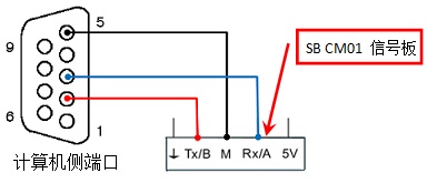RS232 网络为两台设备之间的点对点连接,最大通信距离为15m,通信速率最大为 115.2 Kbit/s 。RS232 连接可用于连接扫描器、打印机、调制解调器等设备。SB CM01 信号板通过组态可以设置为 RS232 通信端口,典型的 RS232 接线方式如图 7. SB CM01 信号板 RS232 连接图所示。